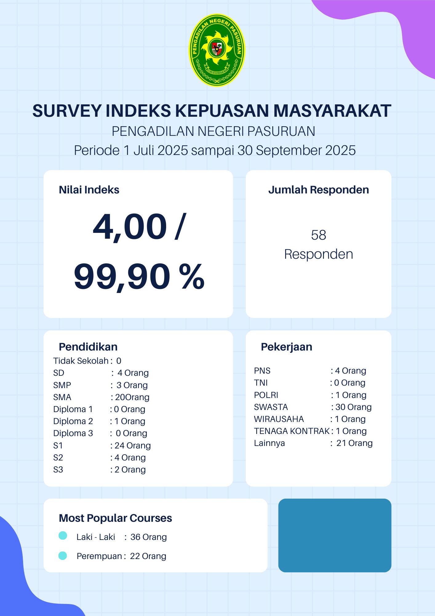 Pasuruan, 05 Maret 2026 - Pengadilan Negeri Pasuruan mengadakan acara buka bersama dan tasyakuran untuk anak-anak yatim, sebagai bentuk kepedulian sosial dan penguatan kebersamaan di bulan suci Ramadan 2026. Kegiatan ini dihadiri oleh seluruh pegawai serta jajaran pimpinan Pengadilan Negeri Pasuruan.