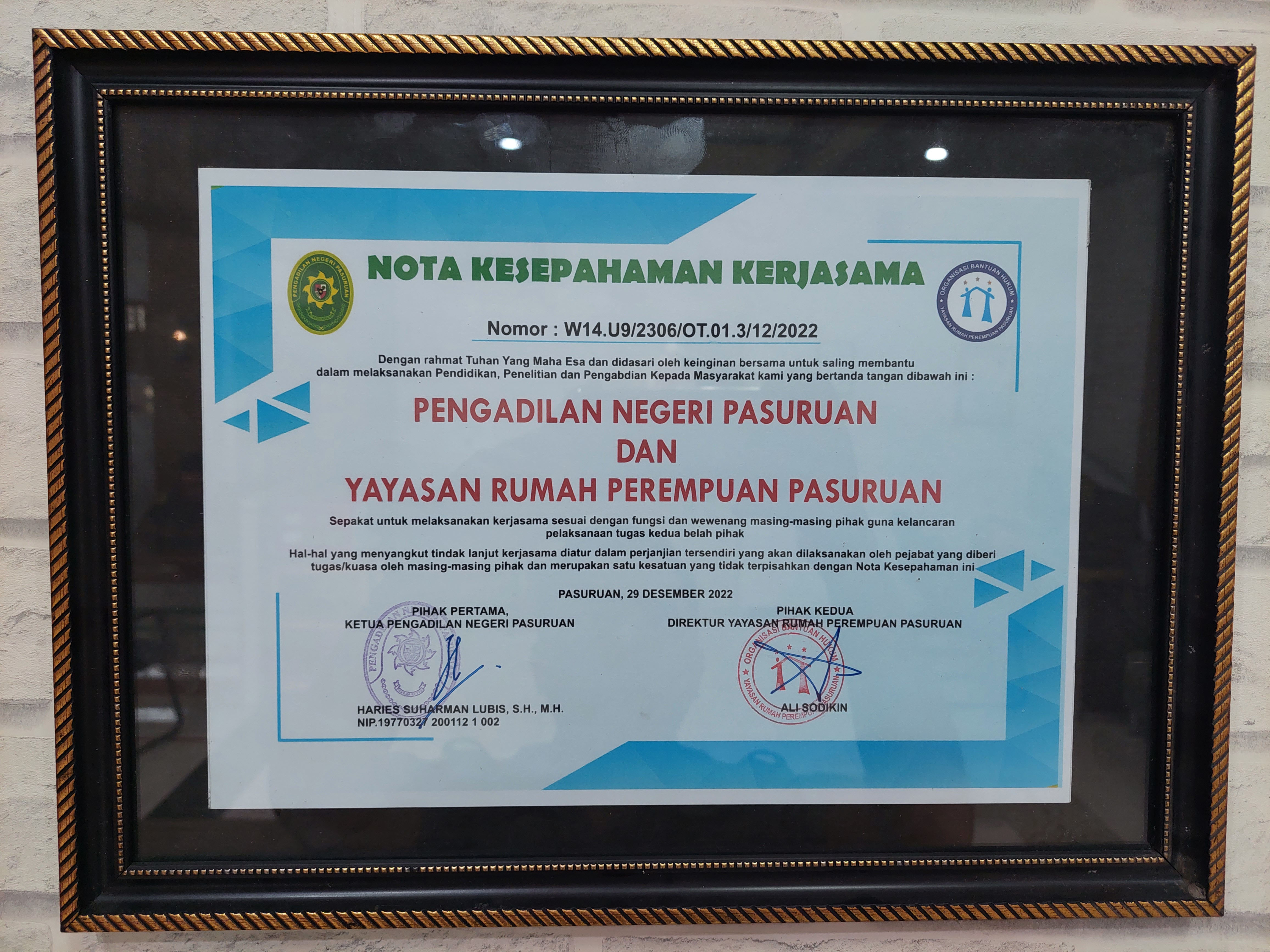 MOU Posbakum Pengadilan Negeri Pasuruan dan Yayasan Rumah Perempuan Pasuruan Tahun Anggaran 2023